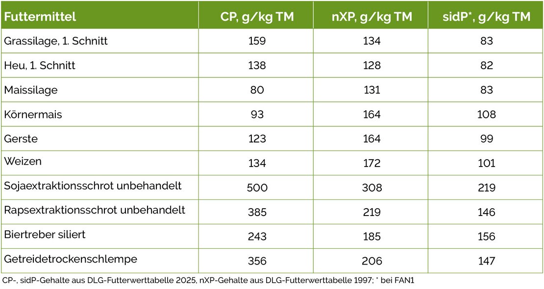Die sidP-Gehalte entsprechen bei den meisten Futtermitteln in etwa 60 – 70 % des jeweiligen bisher bekannten nXP-Gehalts.