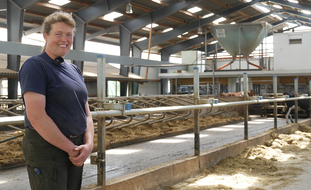 „Wir lassen die Kühe morgens um halb neun raus und holen sie gegen halb fünf wieder rein. In der Mittagszeit kommen die Kühe gerne für eine Extra-Melkzeit in den Stall, gehen dann aber nach Belieben wieder zurück auf die Weide. An heißen Sommertagen lassen wir die Weide sogar ganz offen, damit die Kühe tagsüber rein- und nachts rausgehen können. Das funktioniert wunderbar mit den Melkrobotern“, so Katharina Eicker.