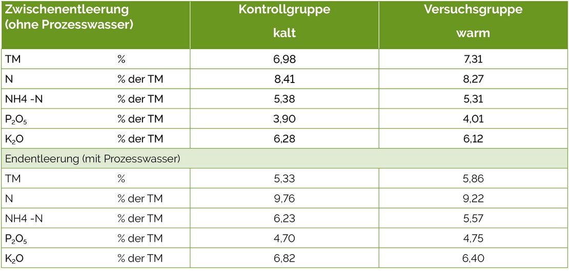 Die Gülle der Versuchsgruppe war etwas trockener als die Kontrollgruppe und enthielt weniger Stickstoff und Kalium.